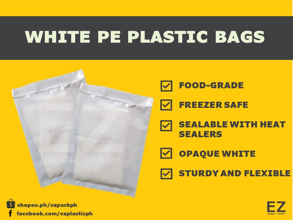 Our WHITE PE PLASTIC BAGS are made with the exact same material used for the production of flexible and durable PE plastic bags except that they are dyed white to achieve opaque transparency. Using this unique packaging option can certainly make your products stand out.